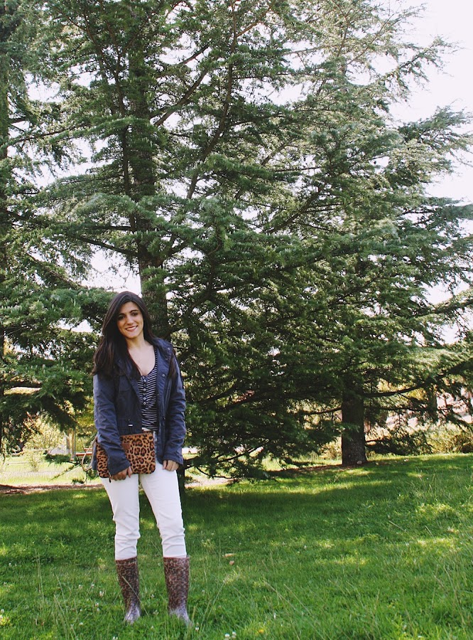 Así es el outfit que os enseño hoy. Debo confesar que mi idea era salir a hacer un picnic de creppes con mis amigos, y llevar unos pantalones blancos combinados con blusita y prints de leopardo. Eso fue hasta que me informaron de que no había mirado por la ventana y nuestro plan era inviable y mi outfit, más. Así que cambié las sandalias de cuña por las botas de agua y la chaquetilla de punto por un chubasquero. Nuestro picnic acabó siendo una mañana en casa comiendo creppes. Pero eran de Nutella, así que totally worth it igualmente.