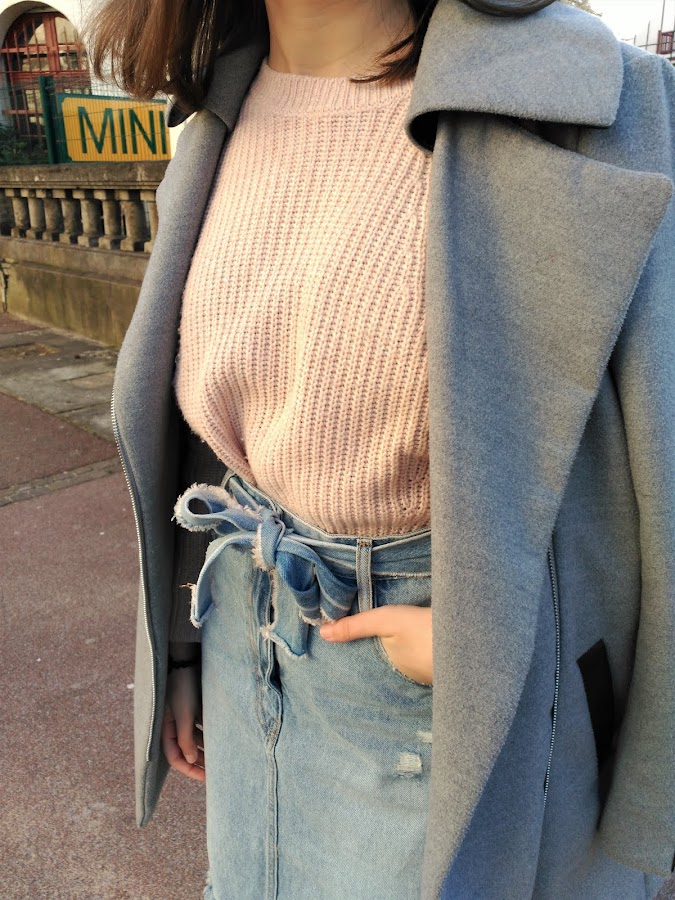 Después, elegí ponerme con la falda este jersey rosita, que aunque no parezca calienta y tiene una mezcla con hilitos blancos. Sinceramente, es una de mis mejores prendas, ¡Me la pongo muchísimo!