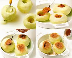 Un poco de caramelo dietéticoSe rodajan las manzanas, se añaden a una sartén, con el poco de agua, la stevia y el caramelo dietético, y se le añade un poco de canela si desea, se deja espesar hasta hacer un almíbar de manzana, luego se sirve sobre la carne para decorar.