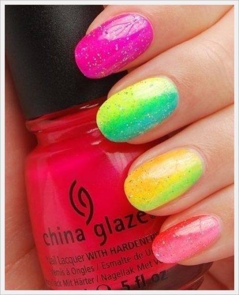 Ombre nail art usando varias pinturas de uñas de color :