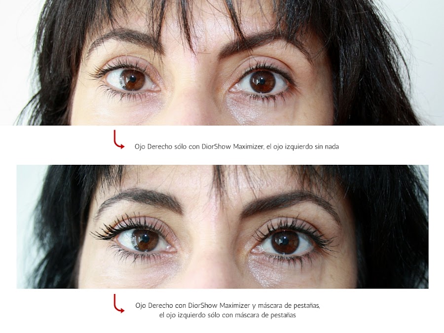 Os dejo unos ejemplos de cómo quedan mis pestañas con ella o sin ella:
