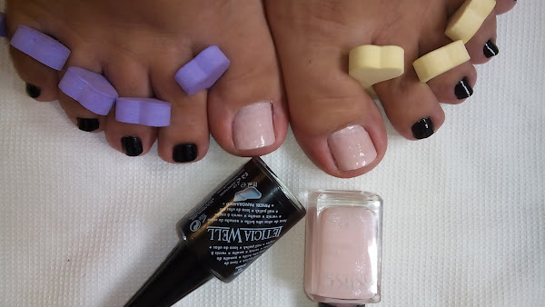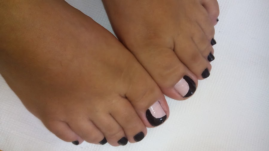 En primer lugar aplicamos una base para proteger nuestras uñas, una vez seca las pintamos de esmalte negro, menos la uña del dedo grande que pintaremos de rosa claro