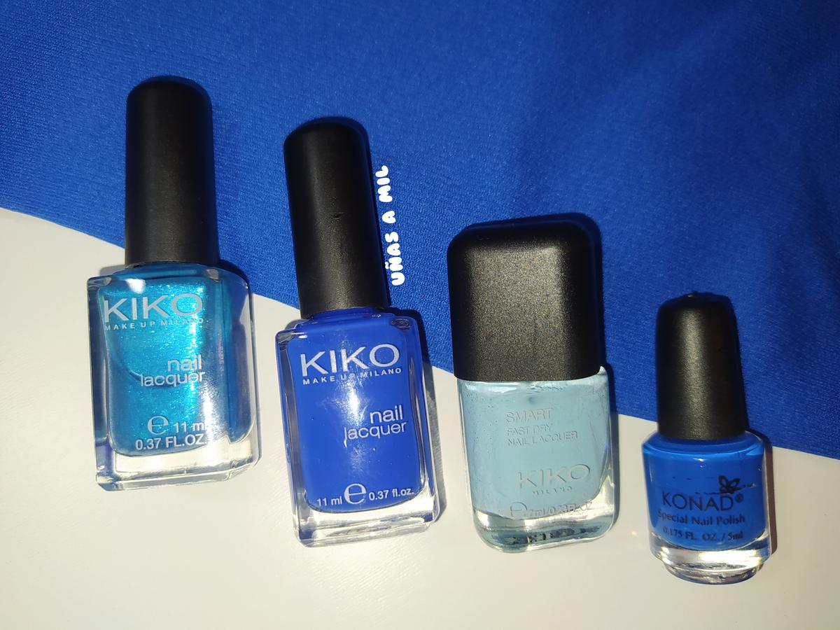 Para ello he utilizado 4 esmaltes en tonos azules: