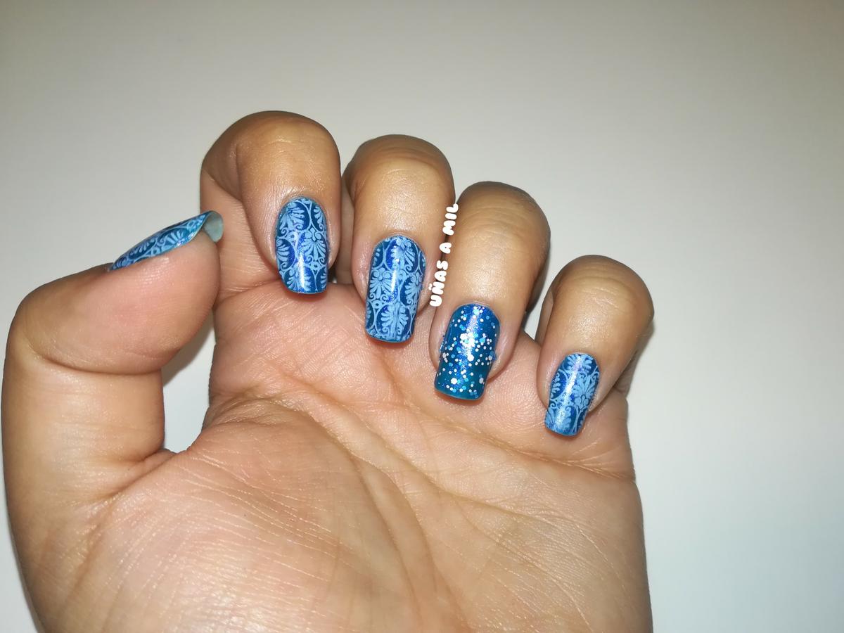ya estoy por aquí de nuevo para mostraros uno de mis últimos diseños de uñas en tonos azul, si os gusta este color tanto como a mí…no os podéis perder este post…