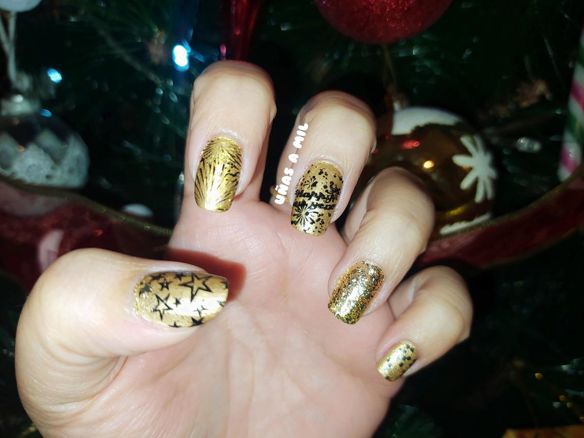 Hoy os voy a enseñar las uñas que lucí para Nochevieja/Fin de año en dorado y negro, seguid leyendo si os gusta esta combinación de colores tanto como a mí