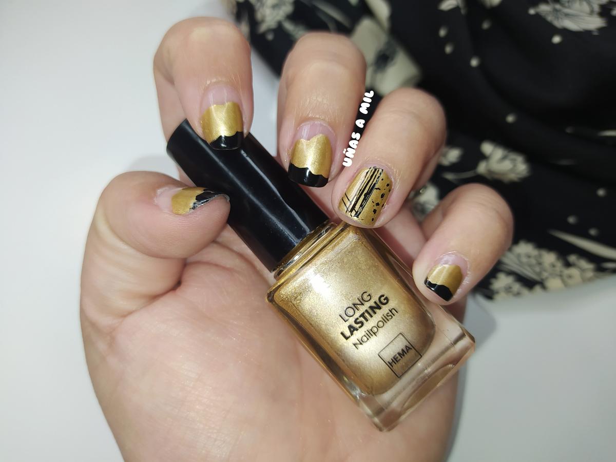hoy os voy a enseñar una combinación de colores que me gusta mucho: el negro con el dorado. Si quieres lucir unas uñas bonitas y elegantes, no te puedes perder este post