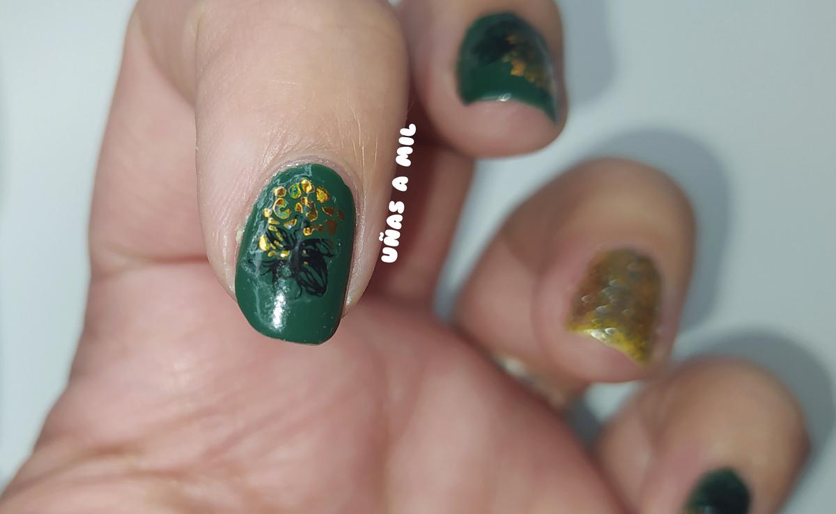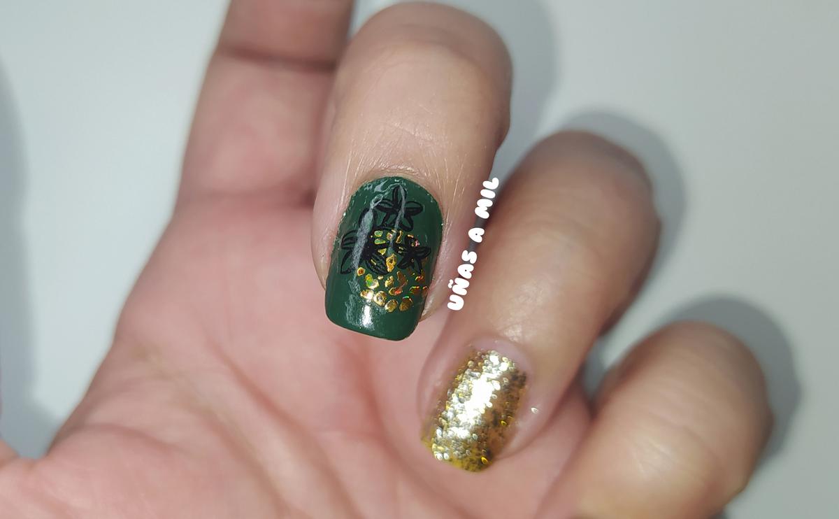 Vuelvo por aquí para enseñaros un diseño de uñas en verde y dorado con pegatinas y muy fácil de hacer en casa. Si os interesa, seguid leyendo…
