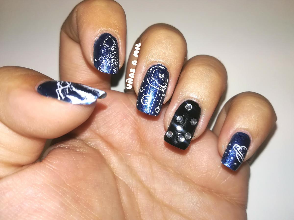 Como ayer fué Luna Llena y además eclipse, y que también coincidió con el aniversario de la llegada del hombre a la luna, decidí hacer un diseño de uñas con esta temática, se trata de un nail art totalmente espacial