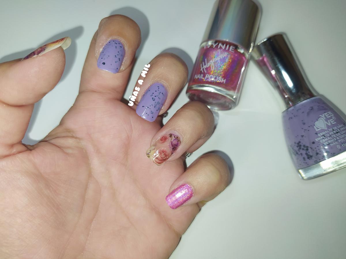 Si os gustan tanto como a mí los estampados florales, no os podéis perder esta manicura en morado y rosa con flores