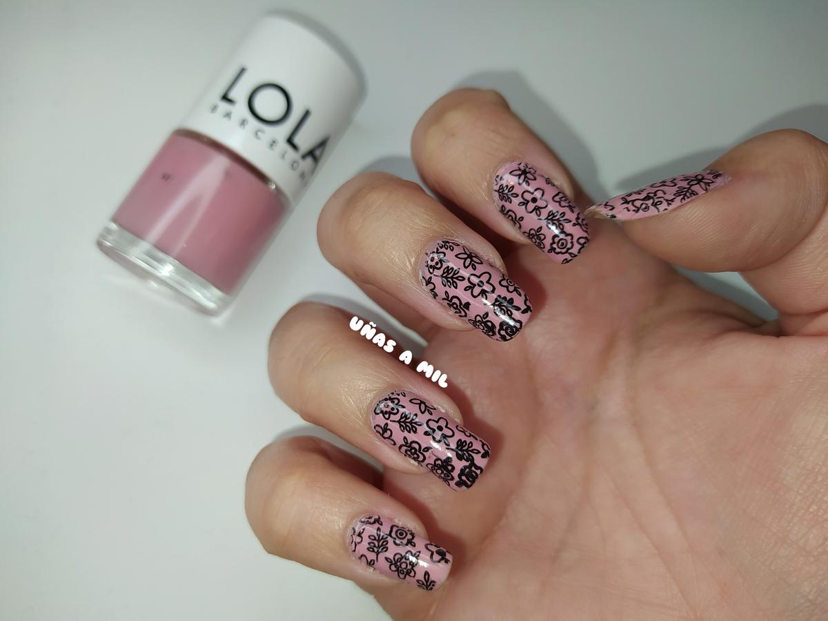 Como esmalte principal para esta manicura, he utilizado un rosa precioso de la marca Lola Barcelona, es un tono al que se le denomina ”rosa empolvado”, y la verdad que me parece precioso y que combina con todo. Es más…he realizado muchas manicuras con este esmalte que podéis ver a continuación: