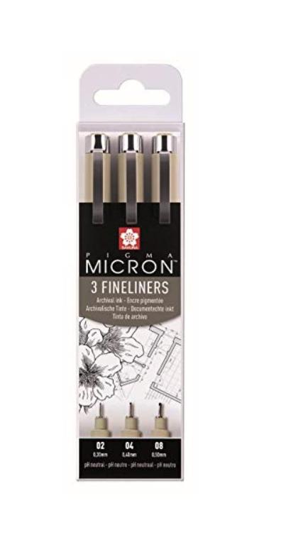 1 Set Rotuladores Sakura (distintos grosores, incluso uno mas fino que el que he utilizado en el tutorial, 11,25 €)