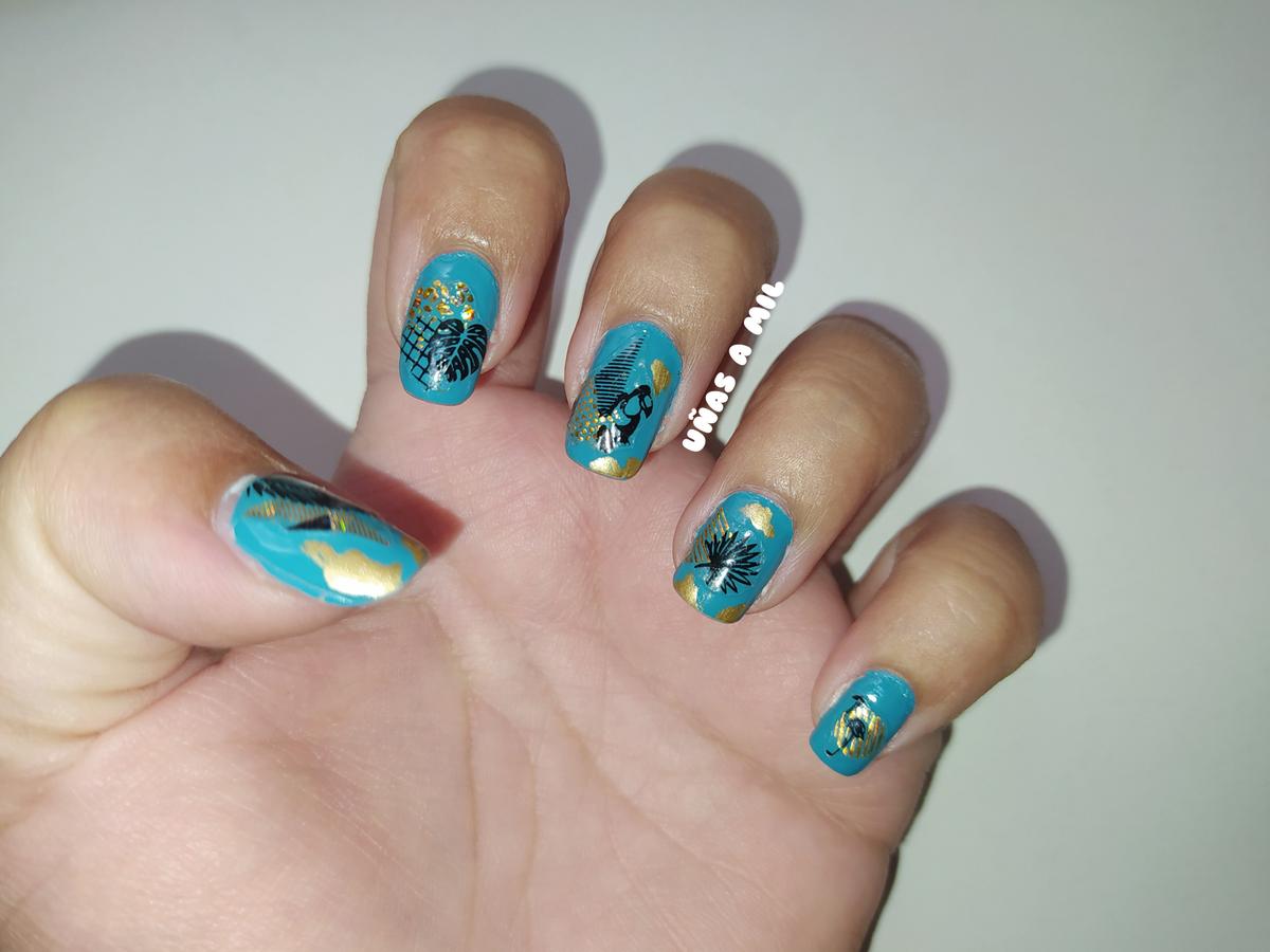 Para el diseño de uñas, ha sido de lo más sencillo, ya que estos dibujos tropicales son pegatinas para uñas que compré en la web de Born Pretty Store. Son una pegatinas preciosas en negro y dorado con hojas, animal print, tucanes, flamencos…y además combinado con diseños geométricos…¡¡¡vamos, una pasada!!!. Si os han gustado estas pegatinas tanto como a mí, aquí podéis ver mas fotos y el link de compra: https://unasamil.wordpress.com/2020/09/18/compras-de-productos-de-unas-en-la-web-born-pretty-store/