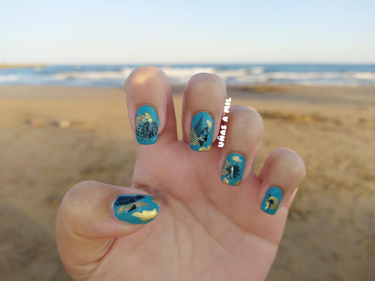 Hoy os voy a enseñar uno de mis últimos diseños veraniegos en color azul turquesa con motivos tropicales y que aún puedes lucir en tus uñas…Si te interesa, sigue leyendo