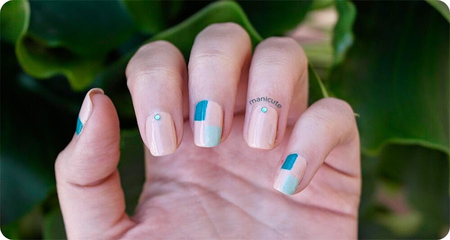 Pues bueno, quería comentaros que la entrada de hoy para mi es especial, ya que le propuse a Belén, administradora del blog ManiCute, el realizar un diseño con la misma temática y ella aceptó, asi que públicamente quiero darle las gracias por darme esta oportunidad :) La temática elegida fue "diseño geométrico" y, como no tengo mucha práctica con el nail tape, decidí arriesgarme, siendo este el resultado final:
