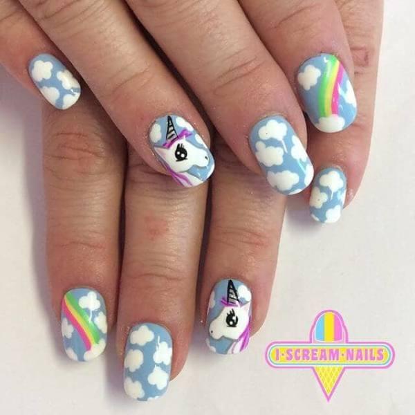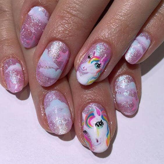 Ideas de diseño de uñas de Unicornios Brillante Arco Iris para niñas.