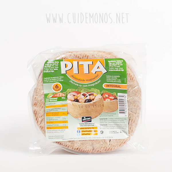 Un pan de pita integral muy fácil de preparar que tan solo hay que calentar durante 1 o 2 min. al horno a 200º.
