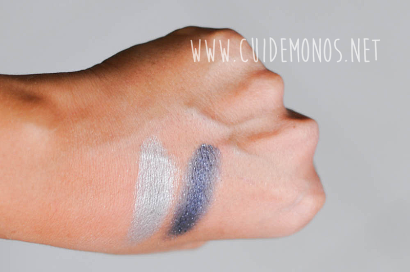En mi caso me han llegado en un tono plateado muy bonito y pigmentado y en un azul profundo bueno para ahumados. La única pega que le encuentro para mi gusto es que tiene algo de purpurina plateada.