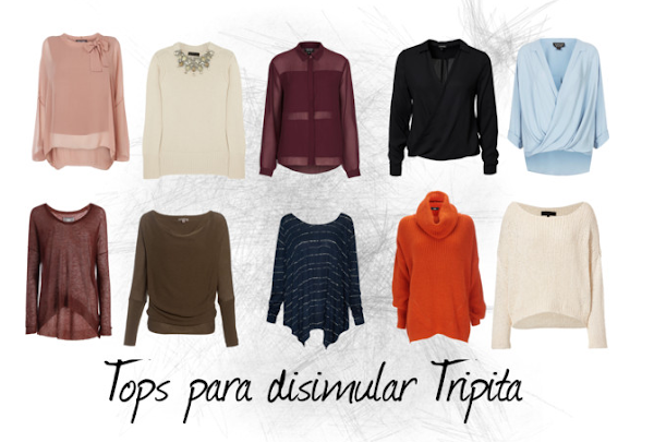 About TOP GARMENTS, we will preferably choose long sleeves, with high armholes and well placed in the upper arm (never wide). It is advisable to wear wide-shirts, alwaysoutside our pants, preferably in solid color without trimmings or frills that may give us more volume. If we choose prints, these should be small. The soft pleats, diagonal lines andempire waist help hide the tummy quite well. And remember that if the situation is too serious, we can always go to control lingerie.