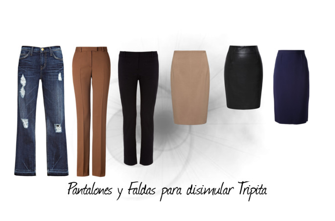 Para las PRENDAS INFERIORES, tenderemos a escoger pantalones y faldas que nos queden a la cintura o justo debajo de ella, de forma que se disimule lo mejor posible la tripita. Debemos además decantarnos por cortes rectos, sin volantes, adornos o frunces, y preferiblemente en tonos oscuros, dejando el colorido para las prendas superiores.