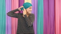 A ver, os lo ponéis sobre la frente, lo recogéis a lado y empezáis a enroscarlo, dejando un poco al final. Después lo enrolláis en un moño, y lo que habéis dejado sin enroscar lo remetéis por dentro, y listo, las más chupipirulis de la playa, chiringuito, piscina, o donde sea que paséis los calores...