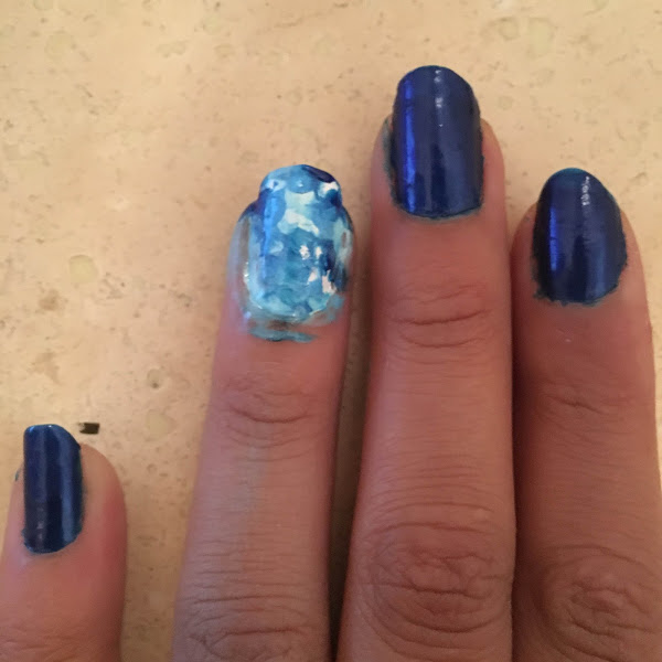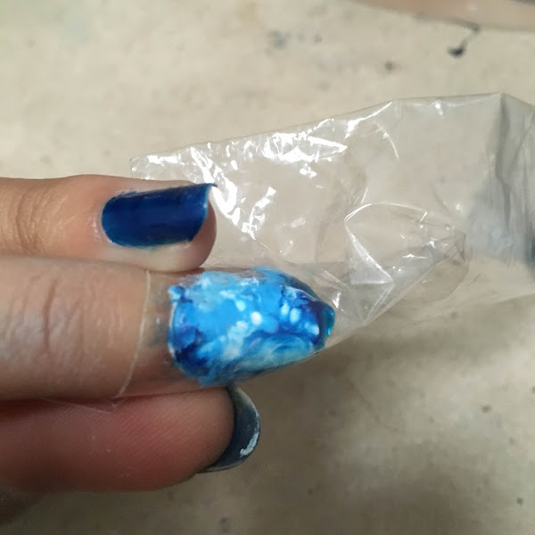 2. Aplica gotas de los colores que quieras en la uña blanca (no te tardes mucho si no se pueden secar).
