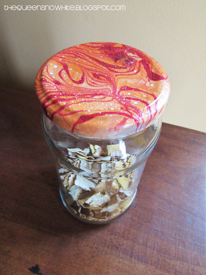 Este es el resultado final ?. Les van a quedar frascos con tapas originales y únicas. No puse una foto del frasco dorado puesto a que las únicas que tenía salieron algo movidas y no me gustaron.