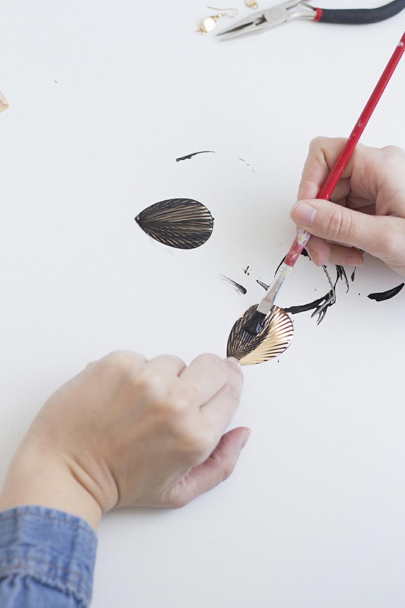Desmonta el pendiente y pinta la parte trasera de color negro. Deja que seque y vuelve a montar el pendiente.