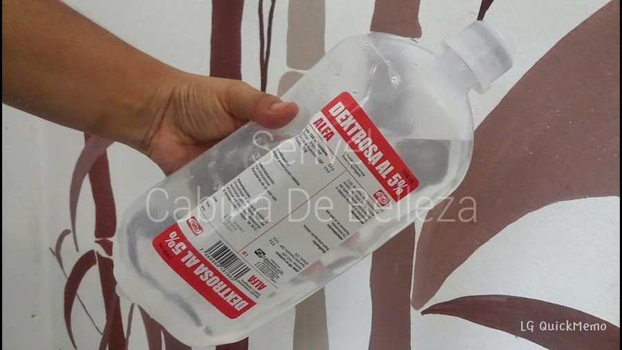 4. Ahora agregamos el suero. Aqui hay que tomar en cuenta el tamaño del envace y la cantidad de producto, para que no se rebose y quepan las ampollas.