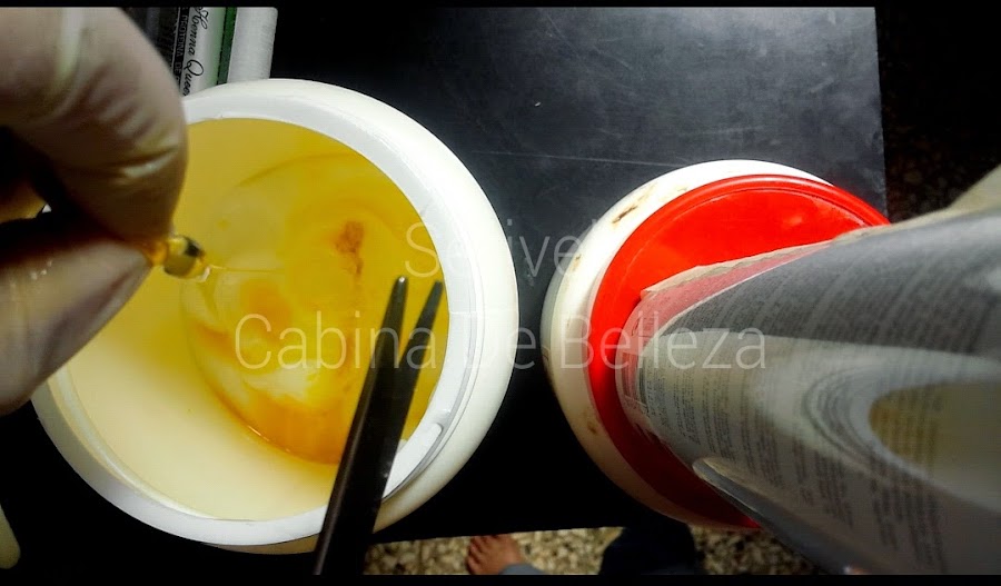 3. Las perlas de Vitamina E las cortamos y expremimos. Es preferible hacerlo directamente sobre la mezcla para no perder producto.
