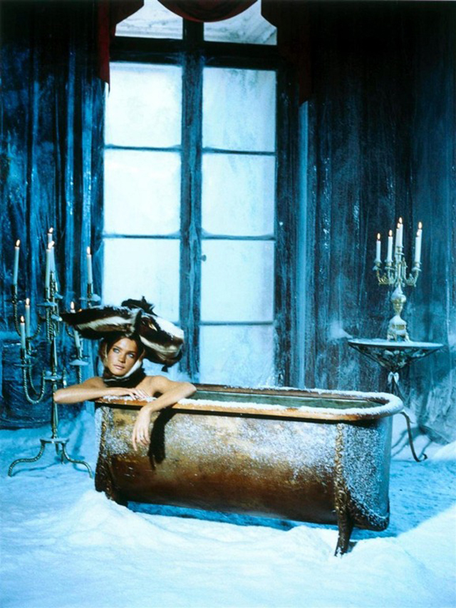 There are some topics that have always made me smile when I look over old fashion editorials; On the one hand some of them elevate the models converting them into unreachable goddesses, while on the other hand there are others that try to make them more ?humane? shooting them carrying out simple actions like driving a motorbike, putting make-up on or? why not? Taking a great bath.