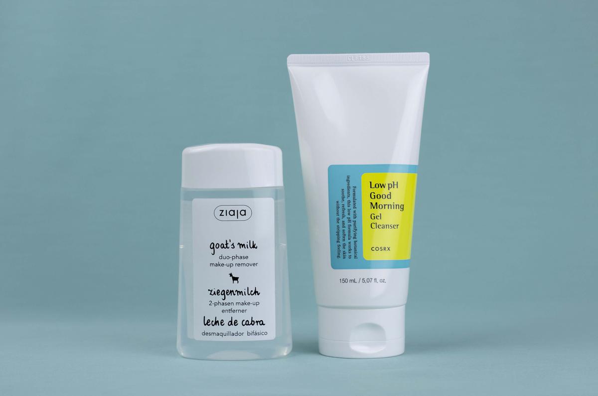 DESMAQUILLADOR DE OJOS BIFÁSICO LÍNEA LECHE DE CABRA de ZIAJA + LOW PH GOOD MORNING GEL CLEANSER de COSRX