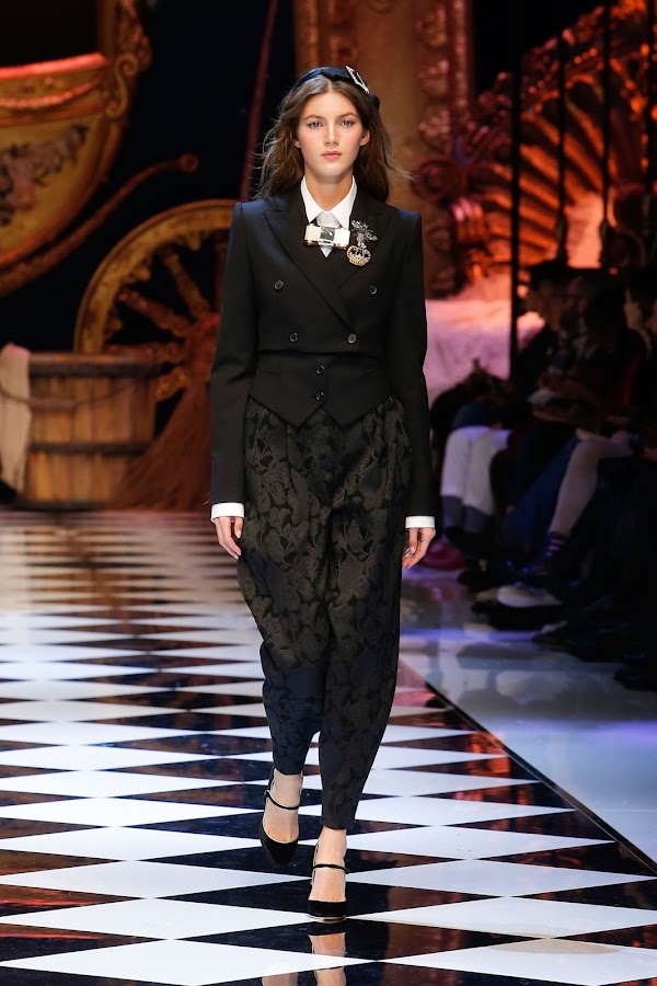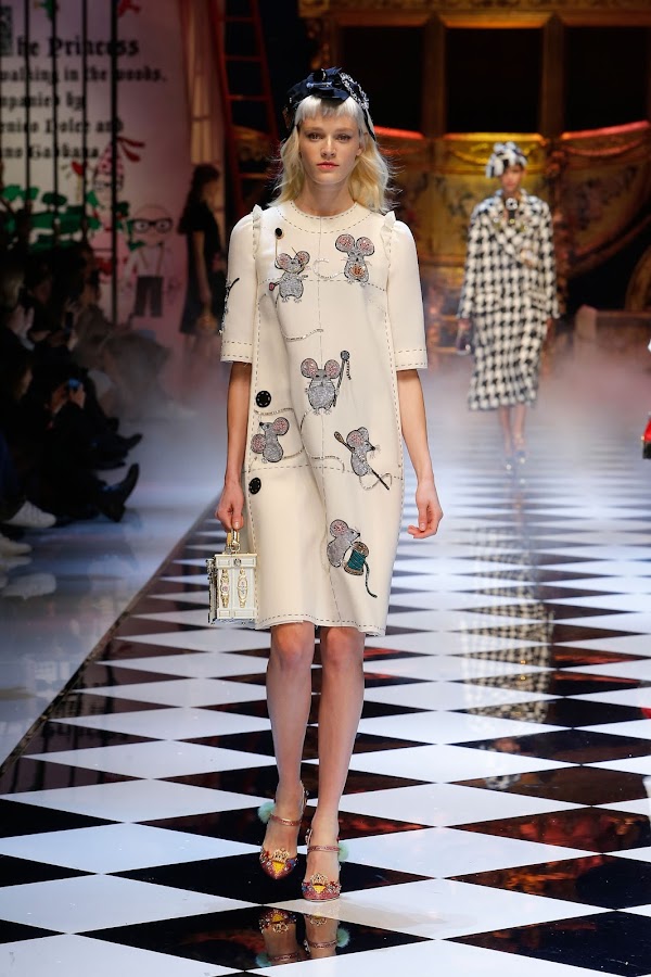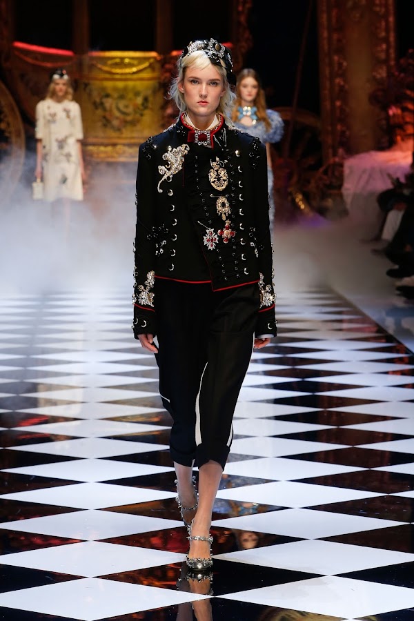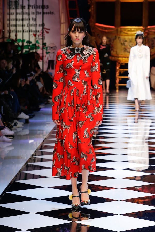 Dolce & Gabbana hacen sueño de toda mujer hecho realidad convirtiéndolos en princesa de cuento de hadas para la 21 st siglo. La colección desfile de moda se inspira en las princesas del mundo de los cuentos de hadas, antiguos y nuevos, sin embargo, se interpretan con una mentalidad contemporánea. Princesa de hoy no se sienta en su castillo esperando a su príncipe para rescatarla, ella sale en el mundo y busca a su príncipe a sí misma. Por lo tanto cuento inspirado en los vestidos de bola de hadas hacen una declaración en la pista, al igual que los separa príncipe inspirados, zapatillas de cristal se contrastan con las botas toscas y minaudieres muy decorados se intercambian con el tronco más grande, como bolsos de mano. Los parches bordados en la ropa y los motivos en los accesorios son un indicio de la inspiración cuento aún no son en modo retro o literal, y por lo tanto crean un sueño de cuento de hadas que puede convertirse en realidad para cualquier mujer moderna.