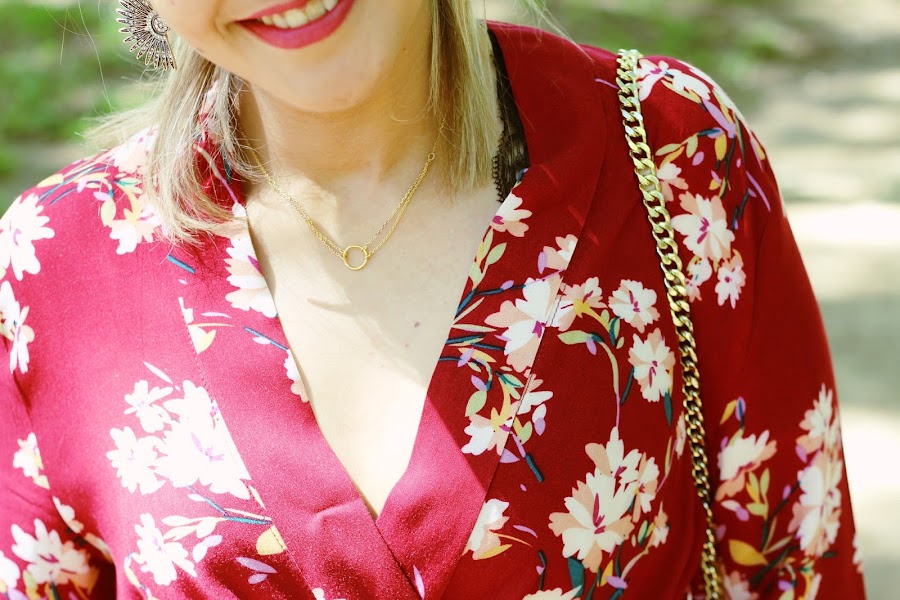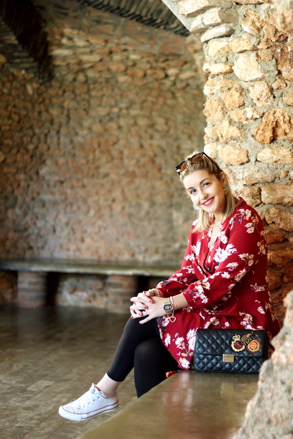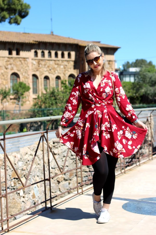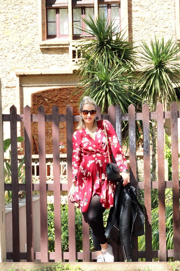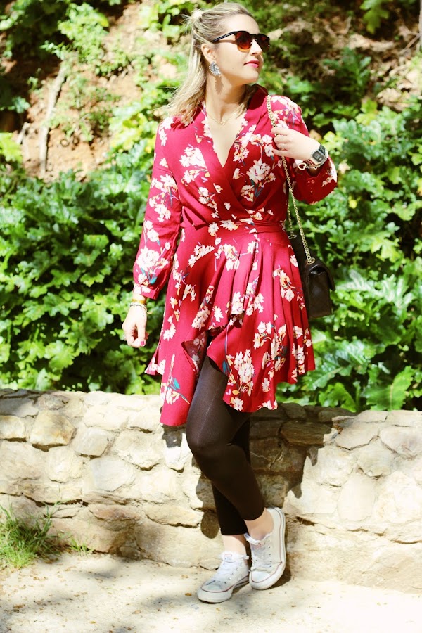 For this occasion, I wore my new red dress with flowers of Rosegal that I think its perfect for the spring. As It seems me very short, I put black leggings under the dress and I put my Converse to give a casual touch to the outfit. The accessories of the outfit were my black bag with parches and my new earrings that I love them.