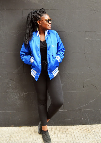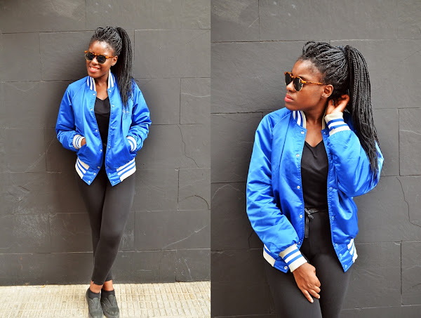 No perdí tiempo y saqué mi bomber azul de Flamingos Vintage Kilo Murcia del armario.El outfit que decidí es bastante sencillo y para el día a día, total black dandole toda la importancia a la bomber...luego me di cuenta que me dejé el bolso en casa (tuve que volver a por él jaja), no pierdo la cabeza porque está bien sujeta que sino...