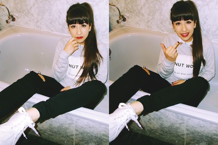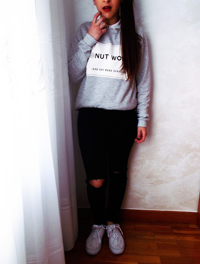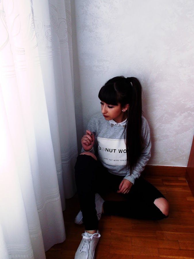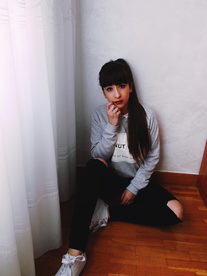 Por último os dejo con una sesión de fotos que queria enseñaros hace mucho y la cual me encanto su resultado. El outfit que os enseño no es nada veraniego pero sigue la tendencia "ripped knee jeans" acompañado de uno de los jerseys best-seller de una de las famosas tiendas de inditex al que tengo mucho cariño porque fue un regalo.