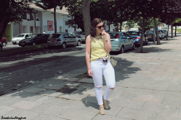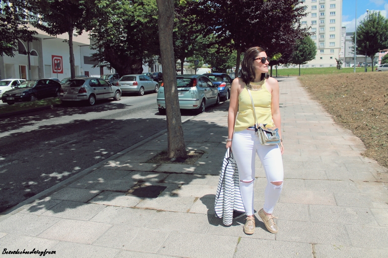 Hoy os propongo un look a tope de color, con uno de mis colores preferidos para el verano, el amarillo. Pienso que este color es super favorecedor una vez que ya se empieza a tener un tono moreno, para acentuarlo más aun si cabe.