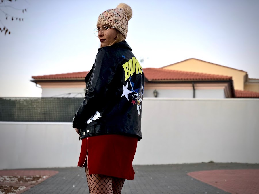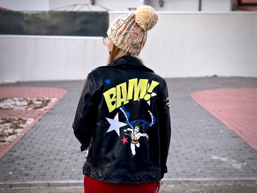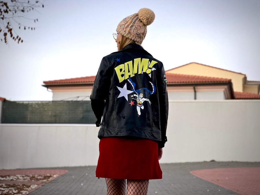 Hoy os traigo un look cañero con una biker súper chula de LIGHT IN THE BOX con estampado de Wonder Woman, que ya os la enseñé varios post atrás, pero esta vez, os la traigo con otra propuesta, combinada con un maxi jersey que sirve también de vestido, de color burdeos, con unas cremalleras doradas en los laterales y además es súper calentito!!