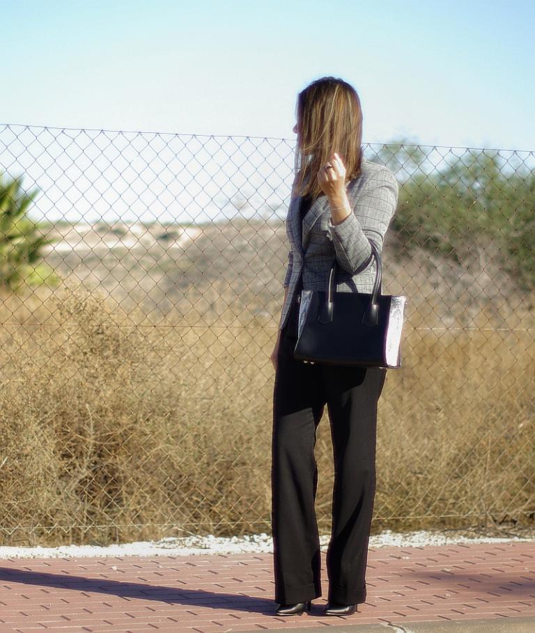 Blazer+Jenas El segundo look, es en clave Working. Debo decir que yo no soy mucho de estos estilos pero, a veces es necesario llevarlos y creo que mejor no puede ir esta blazer para un look como este. Los tonos, son negros y grises sin más y accesorios claves para este tipo de estilismo.