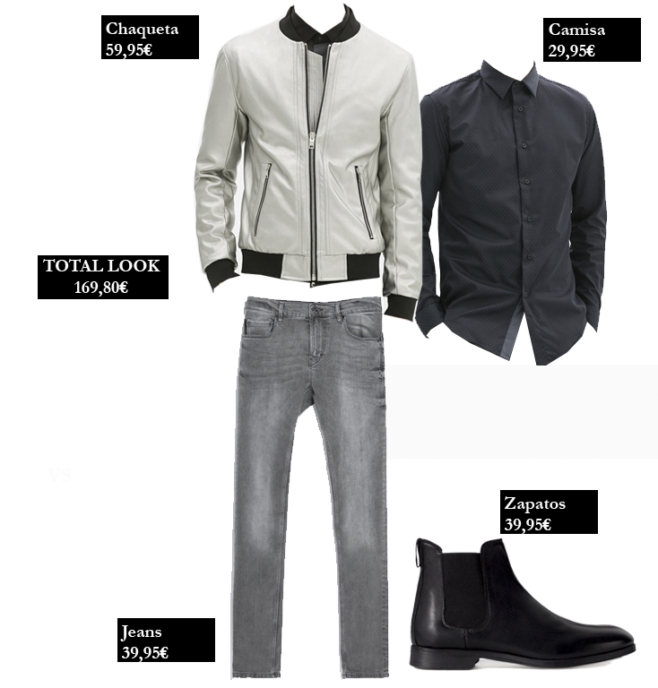 Esta primavera verano aun siguen estando muy presentes, para estas dos propuestas basadas en un mismo look, uno de Saint Laurent y otro de Zara, con una pieza clave como es la chaqueta varsity en color plata, con camisa negra de puntos, vaqueros en gris y botas chelsea en negro.