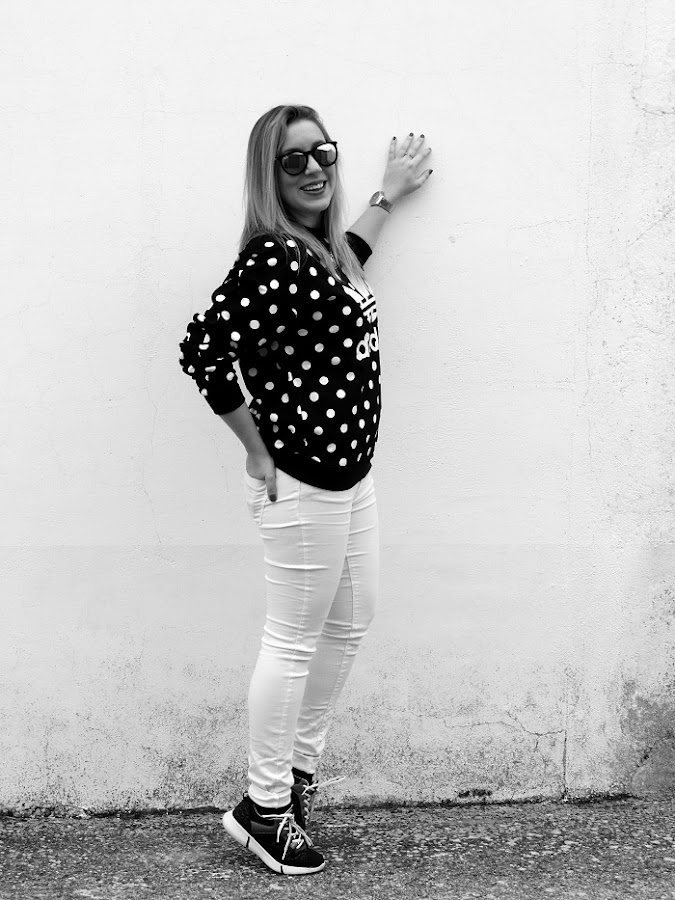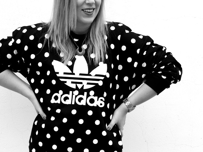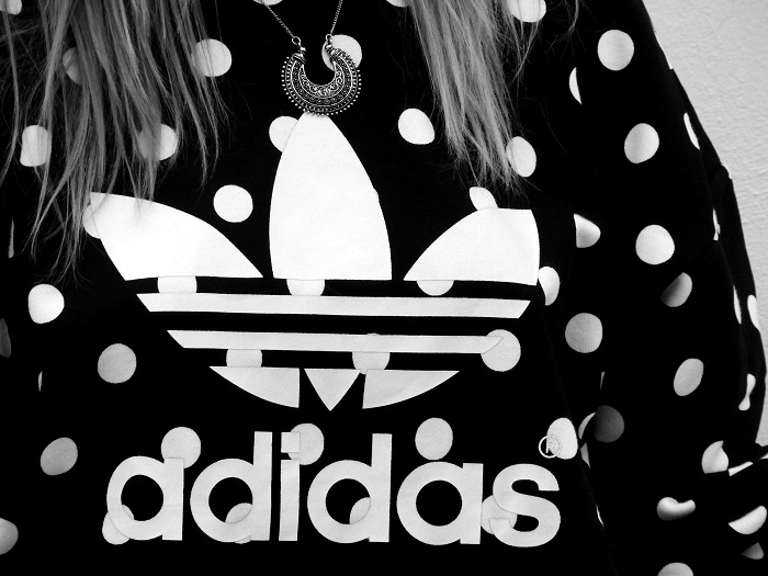 Regalos de cumple molones como esta sudadera...LA sudadera!! Estoy completamente enamorada de ella, protagonista indiscutible de este look extra básico, al cuál no le hace falta descripción alguna. Es de la nueva colección de adidas, que viene con aires flamencos y un corte oversize que me tiene loca. Los lunares en blanco y negro inundan cada una de las fotos de este post dando un resultado para mi gusto genial! Espero os guste y pongáis muchos lunares en vuestras vidas!