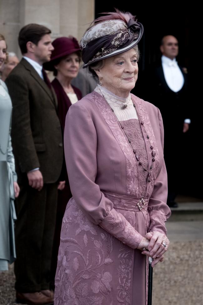 Es innegable el impacto que tienen a priori los personajes, un ejemplo es la gran actriz Maggie Smith que interpreta a la condesa Violet. Las tonalidades que utiliza suelen ser malvas, un color semejante al morado siempre asociado a la aristocracia, con sutileza, aguardando la frialdad que refleja Smith. Este color también tiene una gran carga femenina evidenciando la posición matriarcal que posee la condesa Violet, la cual a pesar de haber enviudado sigue teniendo un peso en las decisiones de la casa.