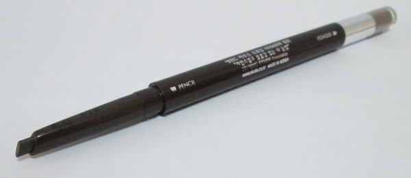 En cambio, la mina, me ha sorprendido gratamente... Especialmente, porque viene biselada, que hace que se aplique mejor el perfilador, ya que tiene la forma (más o menos) de las cejas. Pero, sobre todo, porque es bastante gordita... La mayoría de estos productos, he visto que suelen tenerla, más bien, fina, pero la de éste no. Y ésto es algo que me ha gustado mucho, ya que tenemos la ventaja de que no se va a partir fácilmente...