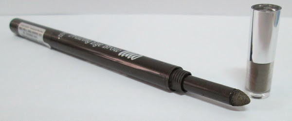 Cómo podéis ver, se presenta en un envase muy cómodo y práctico, de color marrón oscuro, y que contiene 0,80 gramos de cantidad. Lo característico de él, es que por un lado, viene acompañado de una esponjita con polvito marrón, y por el otro lado, nos encontramos con la mina.