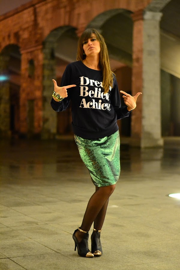 Termino la semana enseñándoos otro de mis looks más nocturnos, de tipo informal pero un tanto festivo a la vez, gracias a las lentejuelas de mi nueva falda lápiz verde de SheIn, ideal para esos brindis navideños que todas hemos tenido en estas fechas, una cita con amigas o un sábado noche.