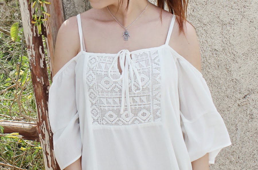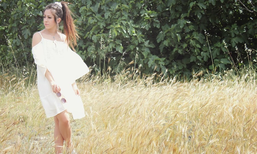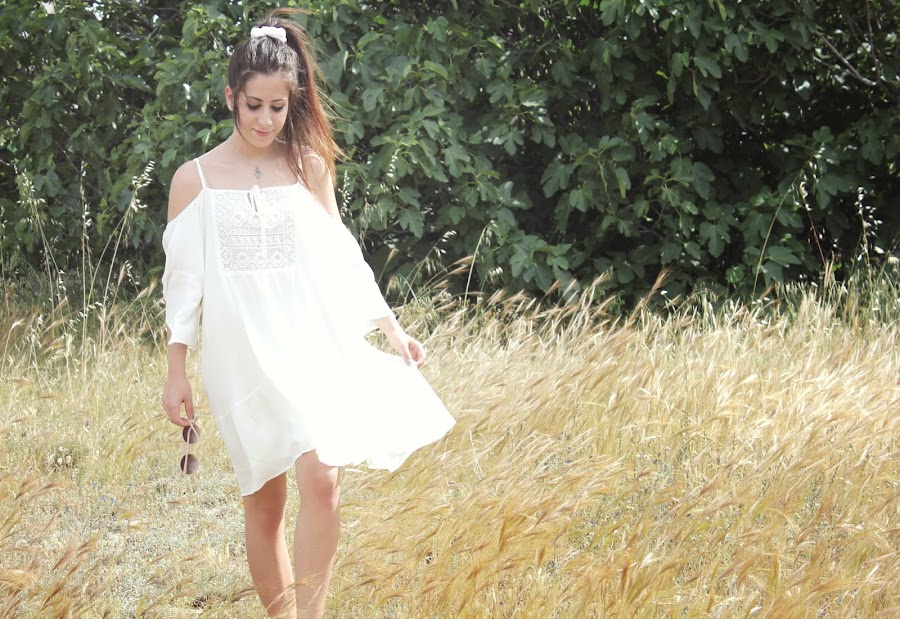 Hello my loves! There are changes in my life, there are changes on my blog!! Do you like it? I really like it. Today I show you a look that I love. The style boho is trending this season, personally I love it and you can see it on my last looks. I"m wearing a white dress with dropped shoulders and embroidery cleavage from Pull&Bear and accessories from Parfois (necklace) and Bershka (hair tie). I hope you like the look and the new aspect of my blog! See you soon.