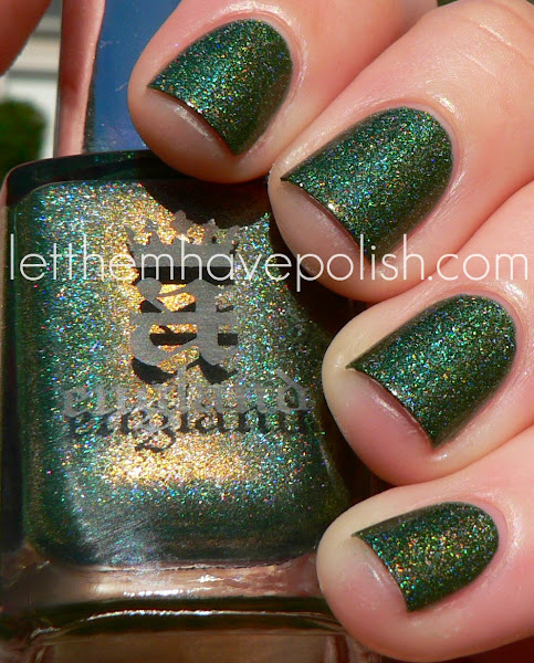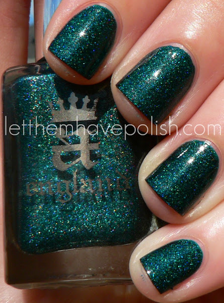 Ahora sobre negro la cosa cambia A mi me comentaron que si lo aplicaba sobre una base negra podía obtener casi un dupe (mirándolo con mucho amor) de St George de AEnglad y yo que estoy desesperada por conseguir ese esmalte casi muero y lo quise probar, la verdad es que no me pareció tanto, es más yo lo veo más una onda a Dragón de AEngland que también es hermoso!