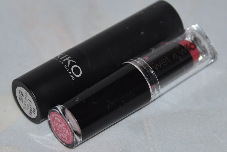 Se trata de dos labiales de Kiko y de Wet and Wild en mi favor tengo que decir que cuando los compré no me paré a pensar que fueran tan parecidos e incluso he tardado en darme cuenta,hasta que,un día de esto que te pones a mirar y ordenar tus labiales y...¡sorpresa! tenemos gemelos ;p