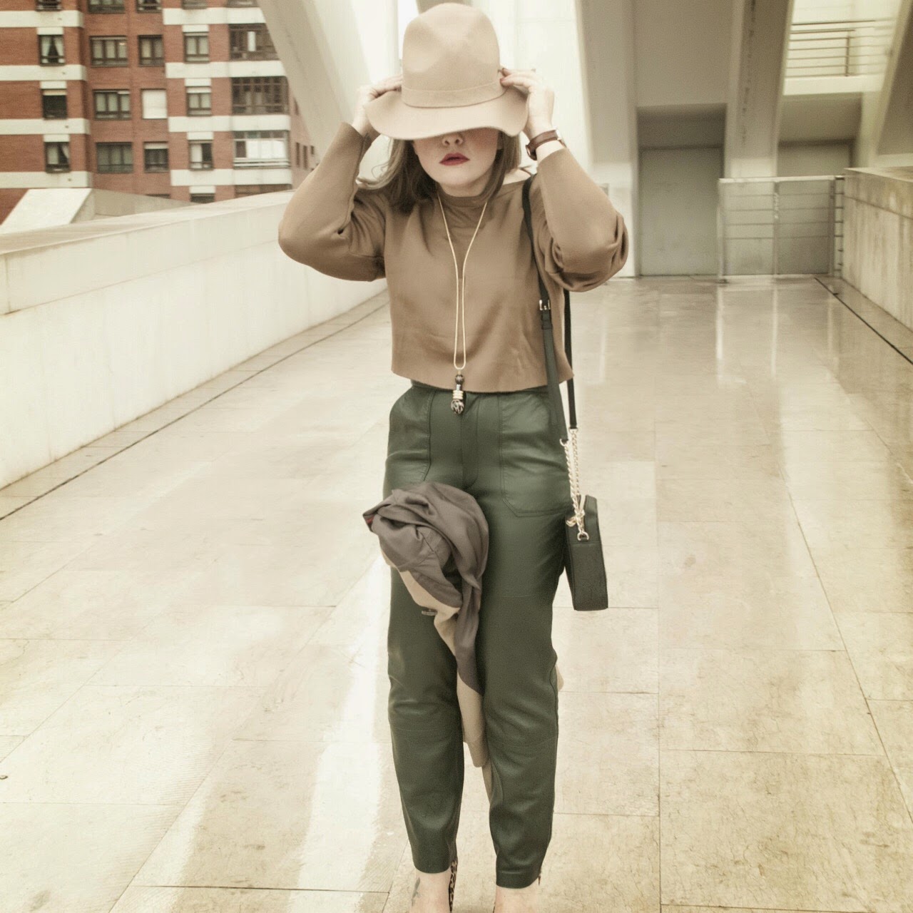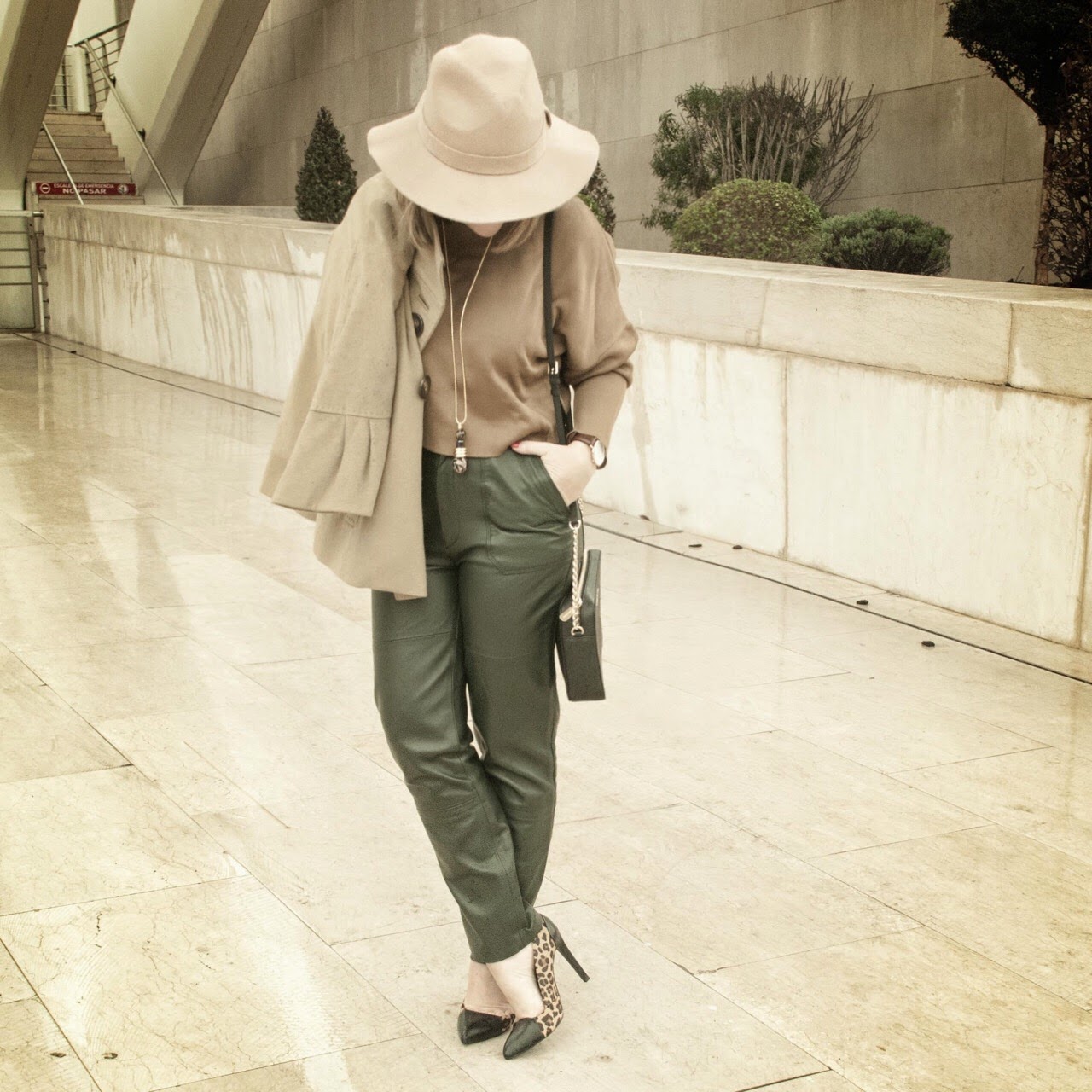 Respecto a las prendas del look ya las conocéis todas excepto el pantalón. Lo tengo desde hace mucho pero aun no lo había puesto. Es un fondo de armario atemporal, el clásico pantalón de cuero en verde musgo. Me costó estrenarlo pero ahora creo que lo veréis bastante a menudo.