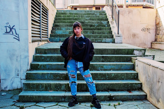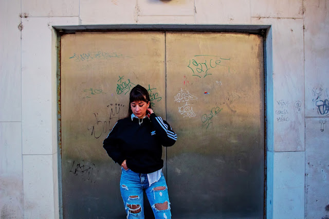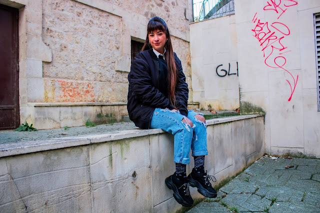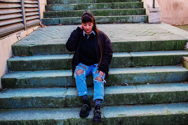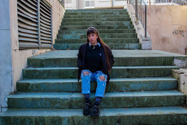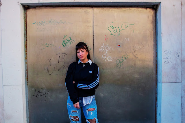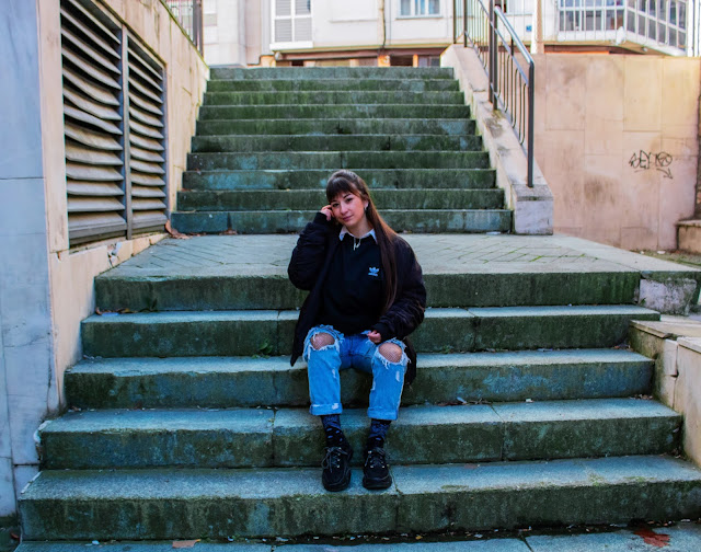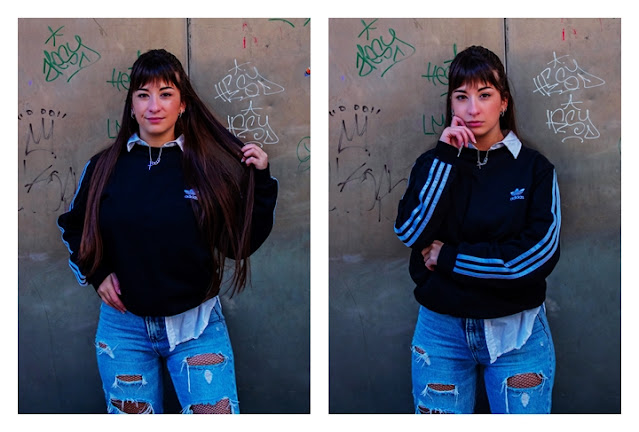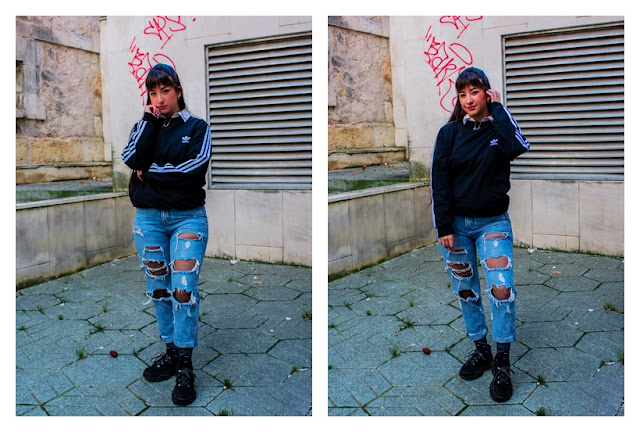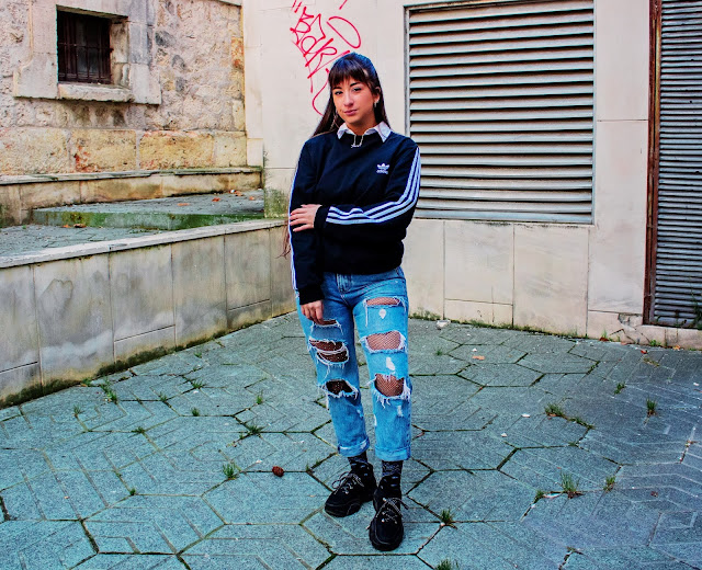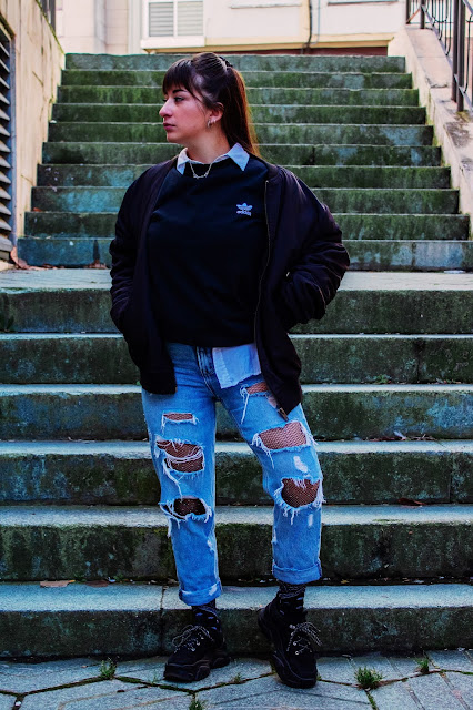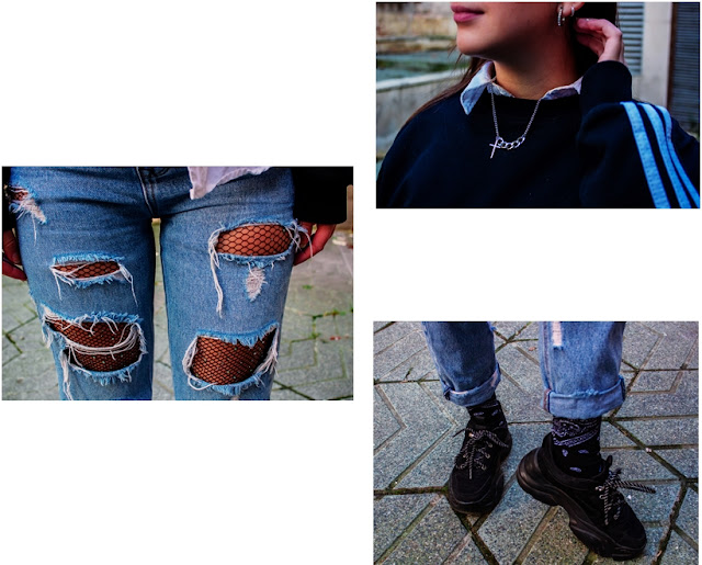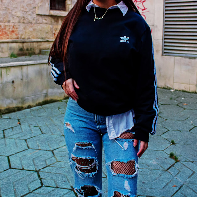 Sweatshirt: Adidas // Shirt: H&M // Jeans: Stradivarius // Jacket: Pull&Bear // Sneakers: Pull&Bear // Cashmere Socks: Dresslily (same here) // Fishnet Socks with shimmer: Dresslily (same here) // Necklace: Dresslily (same here)