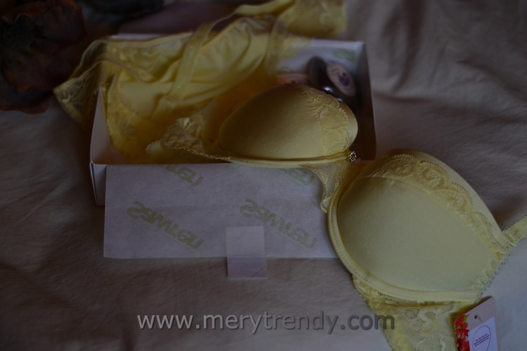 Mi última adquisición en concreto, como veis, es este conjunto de la nueva colección en color amarillo con sujetador push-up a juego con tanguita en microfibra satinada y detalles de encaje ligeramente brillante. ¿Qué os parece?